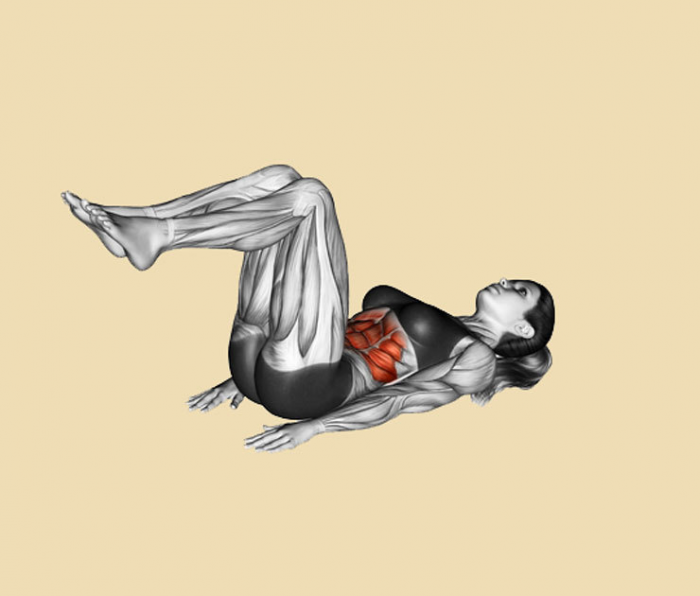 2. ИП — прежнее. Сделать резкий и сильный выдох, максимально втянуть живот и задержать дыхание на 6–8 с. Свободно расслабить мышцы брюшного пресса.